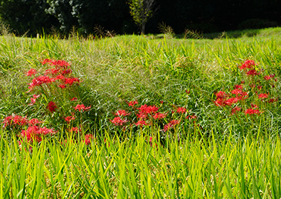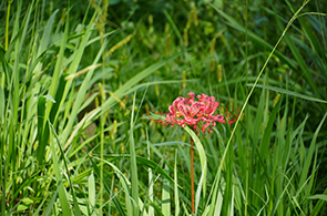 『彼岸花は、秋に鮮やかな赤い花を咲かせる多年草で、特に日本の文化や仏教と深く結びついています。彼岸花の開花は秋の彼岸の頃です。興味深いことに、花が咲く前に葉は出ず、花が枯れた後に葉が成長します。このため、「葉見ず花見ず」とも言われます。