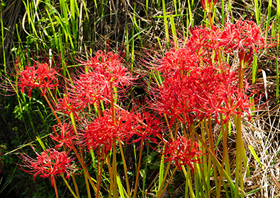 彼岸花の球根には強い毒性があり、誤って食べると危険です。しかし、昔は毒を抜いて食用にすることもあったとされています。 別名:を曼珠沙華とも呼ばれ、これはサンスクリット語で「天界に咲く花」という意味があります。