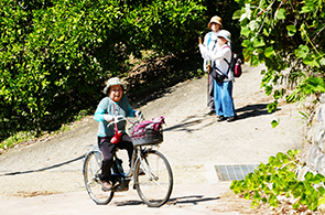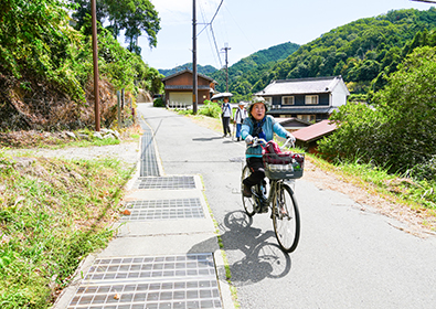姫は電動アシスト付き自転車で |