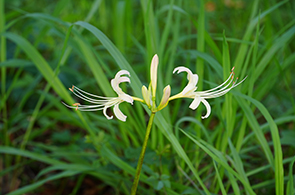 別名を「葬式花」「墓花」「死人花」「地獄花」「幽霊花」「火事花」「蛇花」などなど不吉な名前も付けられています』 |