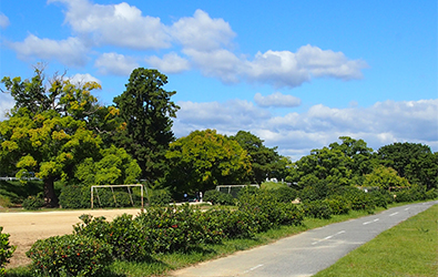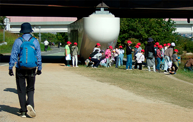 髭の渡し跡辺りは 1970年のエクスポ70の時、タイから20頭の象が神戸に上陸し西宮から国道171号を千里に向かって行進し武庫川左岸まさにこの場所で一泊したニュースを思い出しました。20頭と言いながら実際は来る途中の船中で子供が1頭産まれたようなので21頭です。夜間に騒動が起きてはいけないと尼崎警察署および兵庫県警から50人の警察官が警備に出たそうです。 |