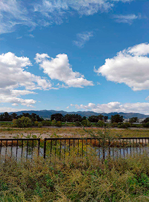 秋の冷たささえ感じる風を頬に受けながら武庫川河川敷を歩き山手大橋の下、山陽新幹線の下をくぐります。上武庫橋下、阪急電車下を過ぎて甲武橋までやってきました。今迄は右岸を歩いていたのですがここからは左岸へ移動です。河川敷に下りて山陽新幹線の下をくぐり、やっと武庫川コスモス園到着しました。
