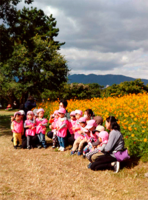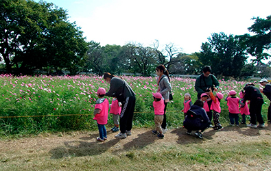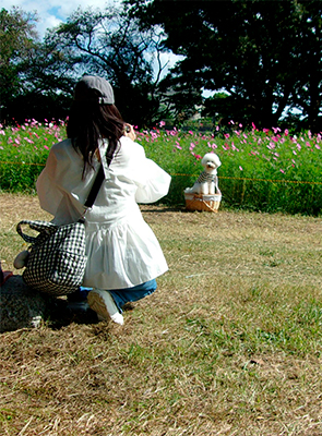 幼稚園児たちが遠足でやってきました。ワンコを連れてインスタグラムの載せるのでしょうかコスモスを背景に必死にカメラを向けていましたがなかなかワンちゃん言う事を聞いてくれません(笑) |