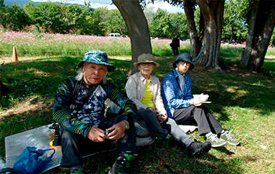 コスモス鑑賞しながら日陰を見つけて昼食タイムです。しかし日陰は寒くて思わず先ほど脱いだ衣類をあわてて着る羽目になりました。季節が移り替わったことを肌で感じました。