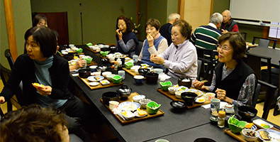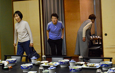 | 翌朝は午前7時の朝食です。深酒組4名(プライベート規約により個人名は伏せておきます・・笑)が、なかなか起きてこず幸男さんが各部屋へモーニングコール。全員が揃ったところで解散式は午前8時30分1階ロビーということになりました。 |