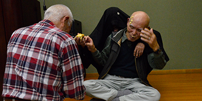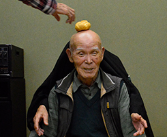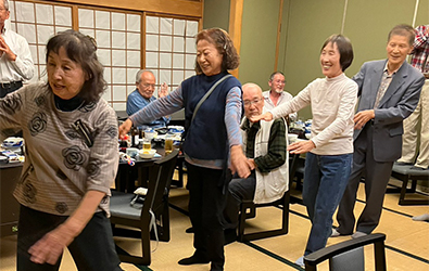 余興の部は自由に出演して貰うのですが誰も出ない可能性を心配して二人羽織と相撲甚句を仕込んでスタートです。石男さんと義雄さんに協力をして頂き二人羽織で爆笑の中、和やかムード。次なるは相撲甚句です。小学校から今迄の人生を歌詞に織り込み熱唱しました(本人の感想です)3番バッターは幸男さんです。「18歳と81歳」の話をしてくれました。恋に溺れるのは18歳、風呂でおぼれるのは81歳、道路を暴走するのが18歳、道路を逆走するのが81歳などなかなかユニークでした。