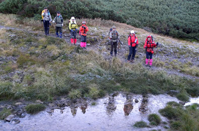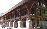 | 徳沢に出て休憩の後、奥上高地自然探勝路を明神館を合流地点と決め、自由歩行することにしました。この道は観光客が、ひっきりなしに我が物顔で道いっぱいになって歩き、右や左に交わしながら梓川沿いに明神館名物の水中リンゴを楽しみに歩き続けました。1個200円(あれ〜っ以前は100円じゃなかったっけ?)合羽橋あたりは混雑していて、買い物や記念写真撮影などはできそうもありません。松本発のバスの時間が迫っているので河童橋からバスターミナルまでバス発車時刻を調べるために小走りをするため、背中のリュックが踊ります。バスターミナル着11時45分。上高地発新島々行き12時00分、土産を買う間も、トイレに行く間もありませんが、15分待てば接続バスが発車します。他のメンバーも全員揃い、無事バスに乗ることができました。 |
