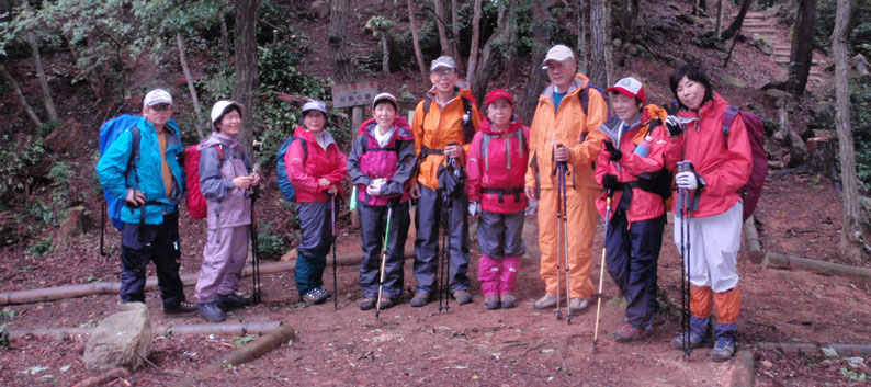 剣尾山はきつい上りが無く、また行程もさほど長くなく、今まで参加した中では一番楽な登山でした。ただ途中から雨になりカッパを着ましたが、ズボンの裾のジッパーを開けずに履こうとして悪戦苦闘しました。