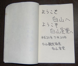 美馬 弘子 楽しかったです。いつまで登れるのか、時間に余裕がないので、これからもどん欲に登れるだけ登りたいと思っています。また連れてってください。 行く先々で『岳紀行帳』に記していただいておりますが、今回は永井旅館様と白山室堂センター様にご無理をお願いしました。白山室堂の山本様は丁重なるご一筆を書き添えてくださいました。 |