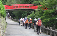 | 箕面滝道を通り、ようらく園地までをハイキングし甲斐駒&仙丈岳の打ち合わせに時間を費やすことにしました。 阪急箕面駅は昨年、リーダーが「目が霞む」と訴えた記念(?)の場所です。 午前9時、参加者が全員集合しましたのでストレッチを終えて、風に揺れる大きな七夕飾りに見送られて出発です。箕面公園滝道を通り30分ほど歩いて最初の休憩地でトイレ休憩を取りました。ここから山中に入るとトイレがないため、少し早めの休憩です。夏とは言え滝道は渓流を吹き上げる風で涼しく、快適に歩を進めます。今日もリードは姫、夏山トレーニングのリードは全て任かされているため頑張ってリードをしています。滝道はいつもより人は少ないものの、矢張り此処は人気コース、この時間だというのに多くの人が下ってきます。 擦れ違いざまに爽やかな声でご挨拶。足取りも軽やかに滝道を上がります。 |