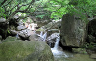 「滋賀県地方は大雨、雷雨注意報」を知りながら8月1日、沢登りのために滋賀県比良地方に行くことにしました。 現地まで行き、水量が多ければ京都大原にある金比羅山にクライミングに行こうと言う2本立ての用意をしてサスケ号のお迎えを受けました。オリオン号とは現地のガリバー村で合流予定です。午前7時過ぎ、此花を出発し名神に乗りました。途中でオリオン号とは携帯電話で連絡を取りながら、湖西道路を出たところでオリオン号を待つことにしました。オリオン号は前を走る自衛隊のトラックを追い越すことができなかったため、少し時間差がありました。水量を確認するためにガリバー村分岐を更に畑集落方向へ進み、鴨川の水量を確認しましたが、たいしたことはなさそうなので「沢レンジャー」部隊は予定通り、八淵の滝登りを楽しむことにしました。 |