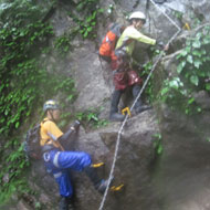 | 水量は少し多目です | 初めての人も積極的に | 水流に負けながら進みます | 小さな岩登りみたいなもんです |