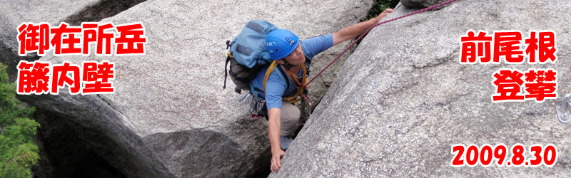 ザックをおろし休憩をする間もなくクライミングの用意に取り掛かる。ハーネスを着けガチャ類をセットしてクライミングシューズを履く。六甲山では味わえないような緊張感が走る。 どの方角が取り付き点やら藤内沢やらわからないままに準備が出来た。 「こっちですよ」 寛リーダーの声に促されて岩を乗越すと そこは前尾根の7ピッチ下部のクラックのある岩壁だった。 そうして 前尾根登攀がはじまった。 |