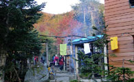 | 青木鉱泉は鳳凰三山登山口にあり標高1300メートル、森の中にひっそりと佇む一軒宿。江戸末期からの歴史があり、鴨居造りの木造建築。泉質は緑礬泉らしく下山時に入湯できるのを楽しみに宿の前を通過しました。 |