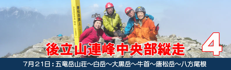 雪の五竜唐松間は2度山行しているのですが、夏山は初めてです。白岳、大黒岳は冬も夏も大きな変化は感じませんでしたが、牛首と呼ばれる難所は、アイゼン、ピッケルが確実に使えたら積雪期のほうが楽に感じました。