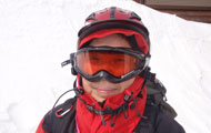 夏沢鉱泉を出発しオーレン小屋までは昨日と同じ道を歩きます。ジョンは幾分昨日よりは体調がよさそうです。しっかり眠り、しっかり食べたのが良かったのでしょうか。オーレン小屋で昨日、出会ったおじさんがいるかと思い、冬季小屋をのぞいてみましたが「モヌケノカラ」で既に出発されていた様子でした。休憩をとることなく夏沢峠をめざします。夏沢峠近くになると樹木のうなり音が激しくなってきます。昨日の根石・天狗よりも風が強いように感じます。ヒュッテ夏沢とやまびこ荘の間で目出し帽、ゴーグル、合羽のフードなどをしっかりと装着し、強風体制に備えました。いよいよ硫黄岳をめざして樹林帯に入って行きます。 |