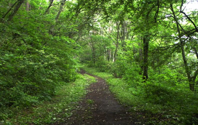 風呂に入りジュースでのどを潤しナビに「鹿教湯温泉」をセットしシラビソ並木を走っていると姫が「車停めて!キツネやっ!」ジョンの目にもポチの目にも見えていませんがたしかにキツネがいたのです。「ホラあそこにいてるやんか〜」何度説明してもわかってもらえず、やっとのことで2人にキツネを確認してもらえカメラを用意した頃には、人間をあざ笑うように逃げていきました。時間も早いことからもうひとつの登山口「車坂峠」を探索しようという事になりナビを高峰高原ホテルにセットしました。ナビはまるで大腸のように曲がりくねった道を延々とドライブすることになりました。駐車場にあるレストランのスタッフに「浅間山を展望できる場所はありませんか?」と聞くと「黒斑山で隠れていてここからは見ることはできません」と言われ仕方なくもときた大腸ロードを下り、鹿教湯温泉に戻りました。 | |