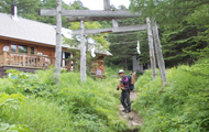 | 浅間山登山は車坂峠から黒斑山(くろふやま)コースもありますが、限りなく浅間山に近づきたいために今回は天狗温泉から入山することにしました。駐車場奥にある鳥居をくぐり、歩きやすい登山道を進んで行くと、一の鳥居、二の鳥居とやたら鳥居が多く多く感じます。分岐で不動滝の看板を見つけ滝を見学するコースを選びました。滝の水しぶきはとても冷たくて透明感がありました。もと来た道を少し戻り、再び登山道を登っていると二の鳥居に出ました。 | |||