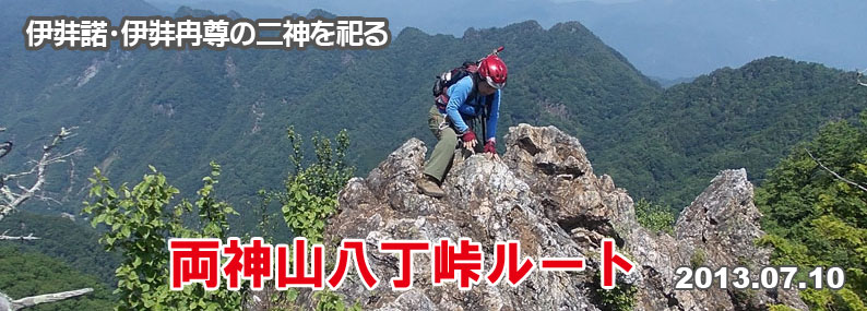 | 両神山とは埼玉県西部、秩父郡小鹿野(おがの)町の南部と大滝(おおたき)地区の境界にある山で、標高1723メートル。 秩父中・古生層からなる山で、とくに山頂付近は硬いチャートからなるため、山稜(さんりょう)はきわめて急峻(きゅうしゅん)で、特異な山容を呈していました。 山頂直下の両神神社奥社に伊弉諾・伊弉冉尊(いざなぎいざなみのみこと)の二神を祀(まつ)るので両神山とよばれる。奈良時代に役小角(えんのおづぬ)が開山したと伝えられ、江戸時代、修験(しゅげん)者の道場としてにぎわった。 山麓(さんろく)に両神神社、中腹に不動滝があります。 登山口から1時間ほどで八丁峠、さらに1時間ほどで行蔵峠、さらに10分ほどで西岳、更に1時間ほどで東岳と順調です。しかし、しかしなのです。それから先はこれでもか、これでもかと言わんばかりに岩また岩が目の前に立ちふさがり鎖を使っての上り下りの連続でした。 「ふ〜っ!聞いてはいたけど難易度の高い山やね」岩場の好きな姫も閉口しそうなぐらいの、しかし面白い山容の登りごたえのある山の様です。 |