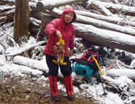「そろそろアイゼン外そうか」と途中で外しましたがまだまだ不安定な道は続いていました。やっぱりスッテンコロリンしてしまいました。