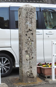 昼食の後熊野古道の道標に沿って歩いて行くと、勝楽寺に到着です。境内の側に紀伊国屋文左衛門の生誕地の石碑がありました。