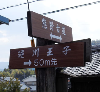 竹藪を抜けると集落がありました。途中に行者石という大きな岩がありました。行者石は熊野詣で盛んな頃、この石の上に立ち「祓の井戸」の水で心身を清め道中の安全と祈願成就を祈ったと伝えられた石だそうです。ここから少し行くと逆川王子神社に到着。45番「逆川王子」に到着したことになります。 |