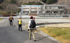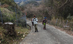 | 猪垣を開けてミカン畑の中の道を歩かせていただきました。傾斜はきついのですが車道の半分の距離でショートカットできます |