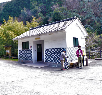 | ランチを終え再び歩いて行くと金魚茶屋が見えてきました。熊野古道の全盛期の時は小さな川から水を引いて、茶屋で金魚を飼って大峠を越えて下ってきた疲れた旅人の心を癒やしたという話が残っています。金魚茶屋跡を通過すると黒い竹林がありました。この集落は質・生産量ともに全国一を誇る黒竹の町。黒竹は、昔から釣竿や家庭用品など、生活に密着した日用品として利用され、天然の艶と風雅さから、建築・家具などの装飾材として、生垣や庭園の植込み用としても珍重されています。『黒竹の里ぴかいち』では、さまざまな黒竹の民芸品も展示販売中。 |