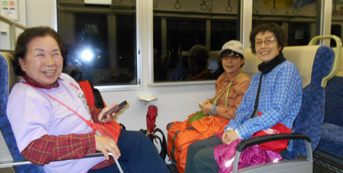 | ▲西九条駅から姫・Junkoちゃん・JONが乗り、新今宮から前夜天王寺泊のウッチー会長とやっちゃんが乗り込んできました |