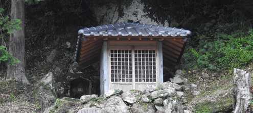 | 慰霊碑のあるあたりは昔、大地震で津波が起こり、津波が引いた後に、木々の枝に魚の首がひっかかっていたと言うことから「魚の首(うおのくび)」と呼ばれているところもありました。那智川に沿って歩いて行くとやがて県道から分かれて、静かな山道を歩く「曼荼羅の道」に入ります。やっと熊野古道らしい山道になってきました。途中の荷坂峠には尼将軍供養塔があります。尼将軍とは、源頼朝の妻、北條政子のことです。政子は、夫源頼朝の没後、尼となり、子、頼家(よりいえ)、実朝(さねとも)の後見として政治に関わっていました。しかし、その子たちが北條氏の策により次々と暗殺に遭い、その罪の苦しみから、二度の熊野三山詣でこの地に立ち寄った際、子の供養のためにこの供養塔を建立したといわれています。石に願い事を書いて納めれば叶うと言われています。 |
