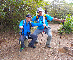 奥の院までの下りの道は急な石ころだらけの道や台風の余波で水が登山道の至る所に流れており、スッテンコロリンもあったりして何とか奥の院に到着しました。またまたここでしばし休憩です。登山届けには下山予定時刻午後2時30分と届け出をしているのですが・・・もうちょっとかかるなぁ。 |