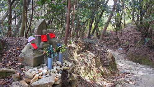 | 奥の院では登山スタンプが貰えるため毎日の日課にしている様子です。六甲山の登山者とは違う雰囲気です。奥の院でも母親との思い出に浸るショーちゃんの後ろ姿を見つめながら、長く休憩していると寒くなってきました。 |
