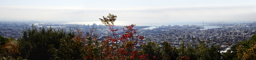 | ▲城山コースの途中から見た芦屋の街方面 |