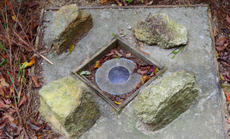 | 荒地山からは風吹き岩を目指して下るのみ、途中で水飲み場があり一人のおじさんが水汲みにやってきていました「ワシはここの水ばかり飲んでいる」との事で欣風さんが代表で飲んでみると「うまいっ!」との高評価でした。姫は湧水で腹痛を起こした経験が何度もあり絶対に湧水は飲まない。ジョンも飲まない~(笑) |