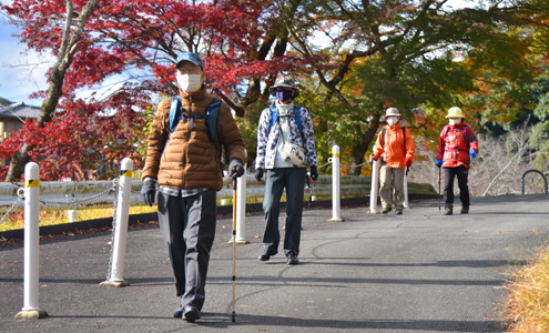| 同じコースを三度も・・余程お気に入りコースなんだと思います。季節を変え、メンバーが違えば同じコースでも違った楽しみ方が湧いてきます。「しんどい・辛い」と言いながらでも、元気で歩ける足があることが何よりもの財産だと思っています。私は「末期心不全」の病名を持つ爆弾男・ポッチーを抱えて日々暮らしていているため、みなさんと一緒に歩けることが何よりのストレス解消です。今回はそんな爆弾男・ポッチーも最後まで歩けました。同行して頂いた皆さんの温かいまなざし、応援、手当に心から感謝いたします。ありがとうございました。 |