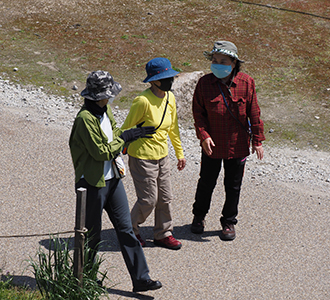 10時18分の京阪バス岩田南行きに滑り込み乗車できました。バスを降りたら堤防の土手めがけて歩いて行き、春風に当たりながら鼻歌なんぞも出て、そぞろ歩きを楽しみました。今回はポッチーも参加なので久しぶりの全員参加となりました。 |