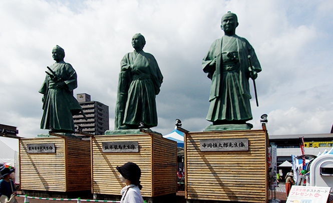 高知駅前には無料のテントが立てられており空席もあります。テントの中にうまく4人が座れましたので駅前演舞場でよさこい鳴子踊りの見物となりました。「♪高知の城下へきてみいや~じんばもばんばもよぉおどるぅ鳴子両手によお踊る♪~」軽快なリズムで私達を楽しませてくれました。「これかぁ!これがよさこい鳴子踊りなんやっ!」やっと、ほんまもんの高知県人になれた気がしました。 |