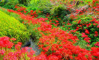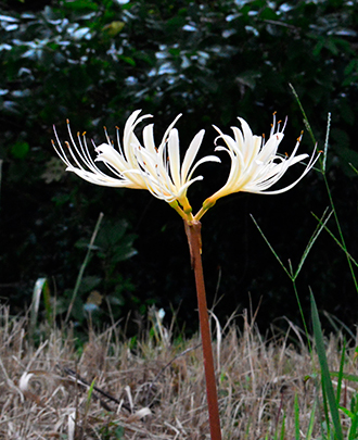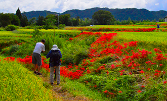 | 近鉄電車・尺土駅で乗り換え後の御所駅行きの車内で全員合流、阿波踊りの旅以来の再会となりました。御所駅に降りて去年シャトルバスに乗った場所へ行くと・・・バスが廃止となっていました。今が彼岸花の見頃なのに何故?と思いながらもバス会社の係員も何やらハッキリせず言葉を濁すような説明でした。仕方がないので4人乗ればタクシー利用も便利とタクシーにて九品寺に向かいました。去年は、あたり一面を真っ赤に染めていた広場に一目散に行って見ると・・・真っ赤どころか黄金色をした稲穂ばかりです。どうしたことなのか?丁度大きなカメラを首に架け三脚を抱きかかえた男性に事情を聞きました。すると「訪れる人のマナーが悪くて開花前に地元の人達で刈り取ったらしい」とのこと。腰が抜けそうでした。私は嘘をついて皆をここに案内したことになりはしないか?しかしそこは長年苦楽を共にした山の仲間達、騒ぐことなく静かに葛城古道歩きへとスタートしてくれました(ホッ) |