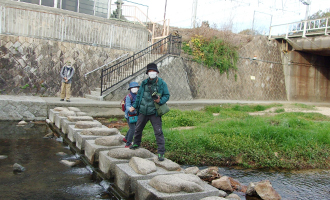 浜夙川橋を渡るのですが橋の上はとても冷たくて風で帽子が飛ばされそうになりました。あわててリュックから手袋を出して防寒対策をとりました。暖かい飲み物も寒さから身体を守ってくれます。 |