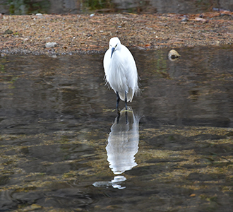 駅からすぐのところにある片鉾池は直径100m弱の池で、その東側には夙川公民館がたっています。池のほとりに建っているというより池の中に公民館があるという少し不思議な光景です。しかし此処はいきなり川の中へ降りてしまったためスルーしてしまいました。 |