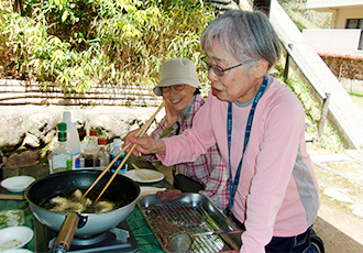 | Junkoちゃんには準備にご苦労をおかけしました。感謝しています。何度も自宅から東屋まで道具や材料を運んだことでしょうか。「至れり尽くせりの接待」を受けました。一同感謝しております。雨の心配もなく、とても良い場所だったと思います。今まではガンガン歩いたり登ったりばかりでしたのでこんなゆとりのある時間も大切だと痛感しました。3日後はイタドリ採りが待っています。わいわい言いながらイタドリを見つけるのも楽しいです。(よもぎ餅とコンニャク団子目当ての人もいますが・・・) |