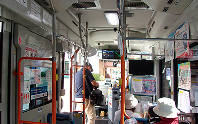 | 灘駅から「坂バス」と言う小さなバスに乗り、摩耶ケーブル下駅に向かいます。途中のバス停から阪急電車利用のjunkoちゃんが乗り込んできました。傾斜のきつい坂道の続く路線を走るので坂バスというのだそうです。運転手さんに聞いたので間違いありません。 |