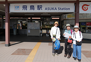| 奈良県明日香村飛鳥駅集合です | 飛鳥駅前ロータリー | 駅から歩き始めます | 姫は電動アシスト付き自転車で |