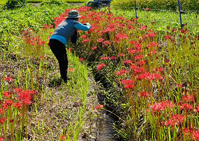 彼岸花の球根には強い毒性があり、誤って食べると危険です。しかし、昔は毒を抜いて食用にすることもあったとされています。 別名:を曼珠沙華とも呼ばれ、これはサンスクリット語で「天界に咲く花」という意味があります。 別名を「葬式花」「墓花」「死人花」「地獄花」「幽霊花」「火事花」「蛇花」などなど不吉な名前も付けられています』