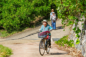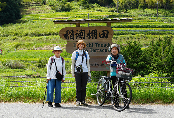 | 明日香駅で集合し「じつは・・・」と切り出したのは姫が腰痛で歩けないことを話し、レンタル自転車で同行することを説明し理解をしてもらいました。「そんなにまでして来なくても良いのに!」と言われそうですが曼珠沙華も見てみたいし、みんなにも会いたい。そんな思いで皆さんに理解して貰いました。 予約しておいたレンタル自転車屋のおじさんがサドルを目いっぱい下げてくれていました。予約時に身長は150㎝だから小さな自転車が良いとお願いしていたため調整してくれていたみたいです。