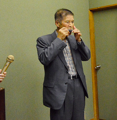 皆さんと一緒に歌ってもらうべく歌詞カードもブログラムに織り込んだのですが…皆さん、聴き惚れて歌わずハーモニカの音色だけで友への追悼式を終えました。