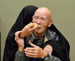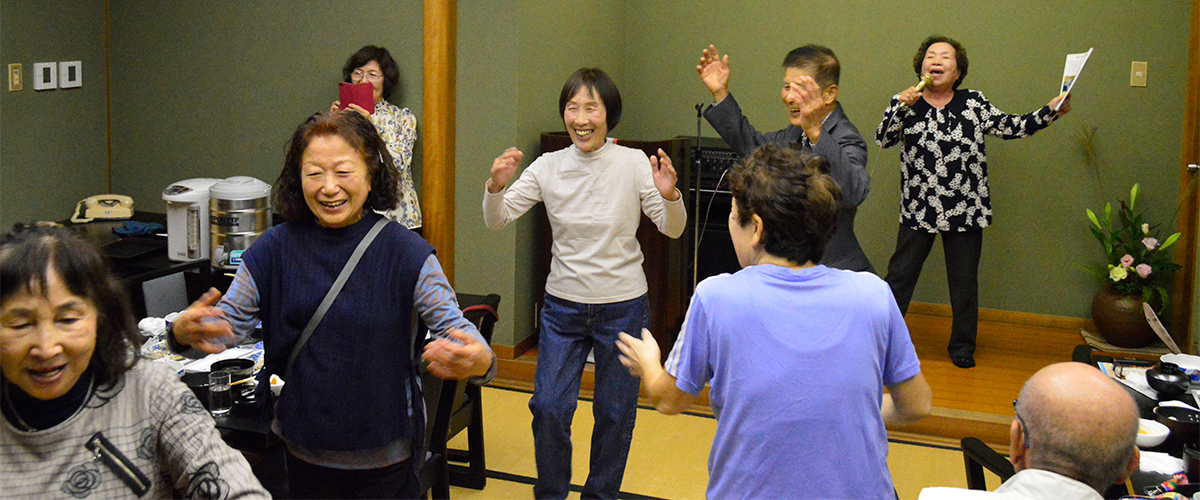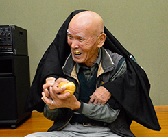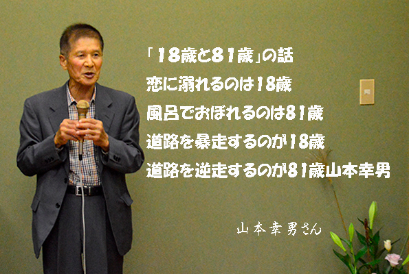 余興の部は自由に出演して貰うのですが誰も出ない可能性を心配して二人羽織と相撲甚句を仕込んでスタートです。石男さんと義雄さんに協力をして頂き二人羽織で爆笑の中、和やかムード。次なるは相撲甚句です。小学校から今迄の人生を歌詞に織り込み熱唱しました(本人の感想です)3番バッターは幸男さんです。「18歳と81歳」の話をしてくれました。恋に溺れるのは18歳、風呂でおぼれるのは81歳、道路を暴走するのが18歳、道路を逆走するのが81歳などなかなかユニークでした。