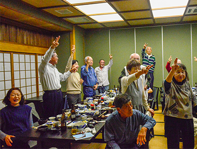 | 声高らかにグラスを合わせて宴の始まりです ソフトドリンクが無いよ~ お茶が欲しいよお~ ビールが空っぽだよ~ などてんやわんやうちに 楽しい時間が過ぎていきます |