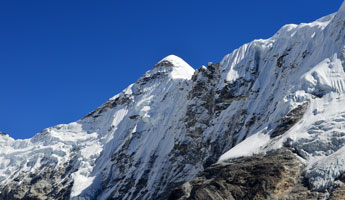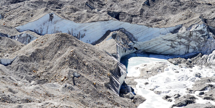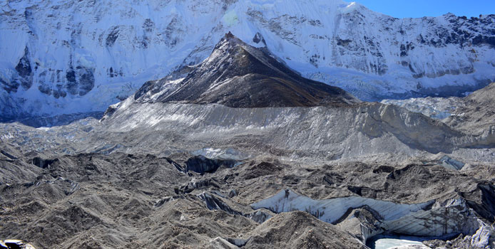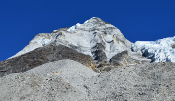 | イムジャコーラの原頭です。砂塵によって隠されていますがその下は氷河です。時々音をたてて崩落しているのが見えました。 |