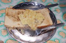 | 「みなさん、おはようございます。今日も元気ですか」リーダー・マッチンドラー氏の声に起きなくっちゃあ。 続いてクックボーイがお湯をもってテントを訪れてくれます。「顔を洗ってください」 次に温かい飲み物が運ばれてきます。今朝はホットチョコレートです。 |